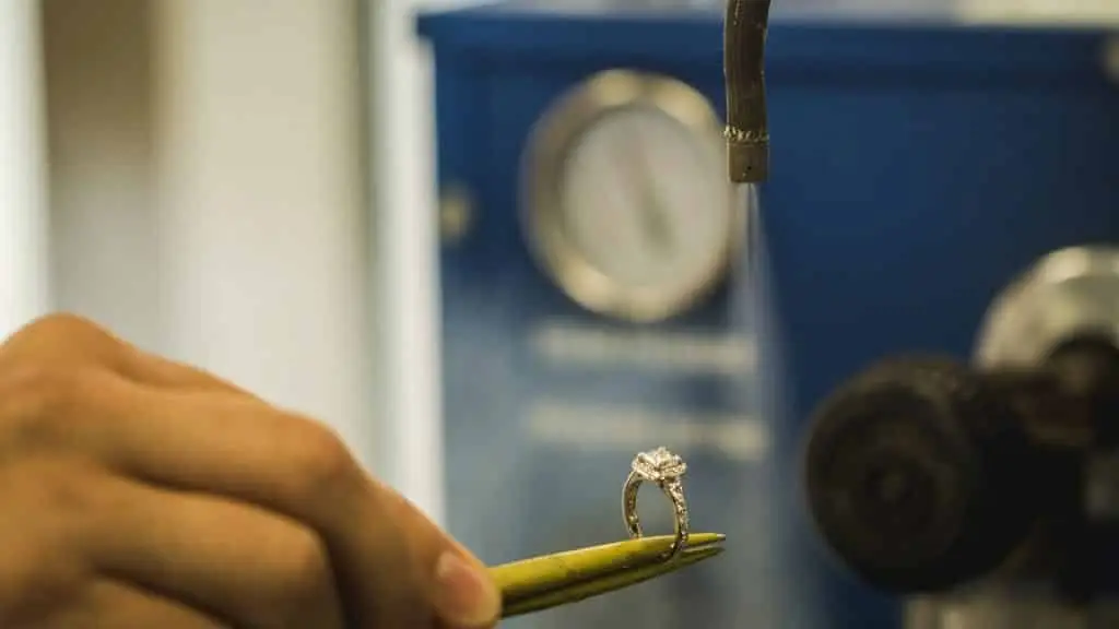 The steam cleaning method requires a highly concentrated blast of hot steam on the jewellery.